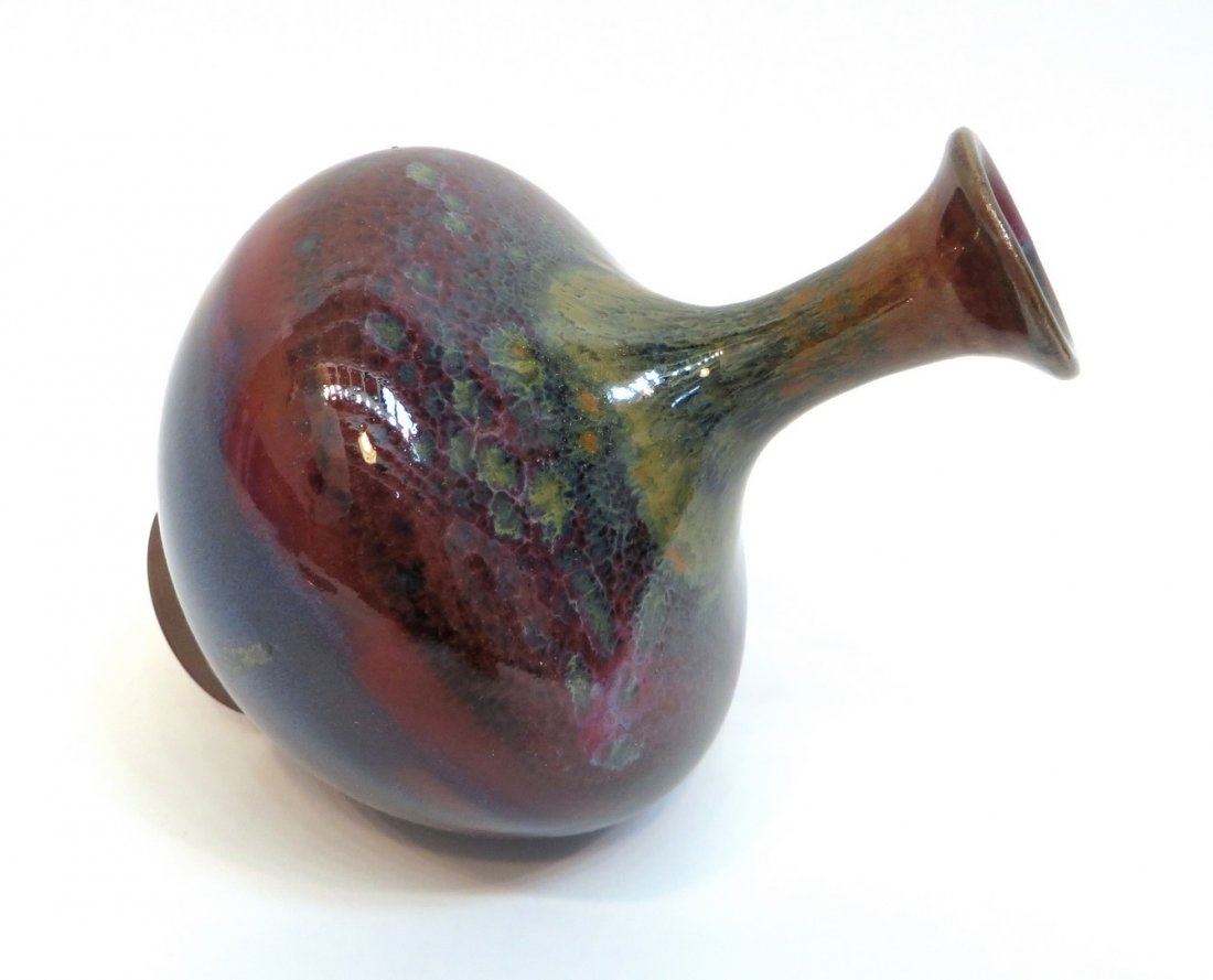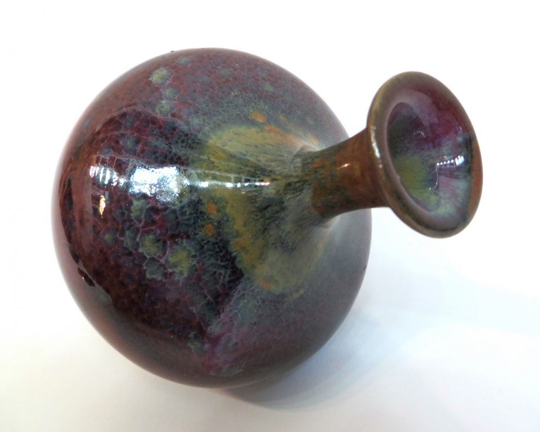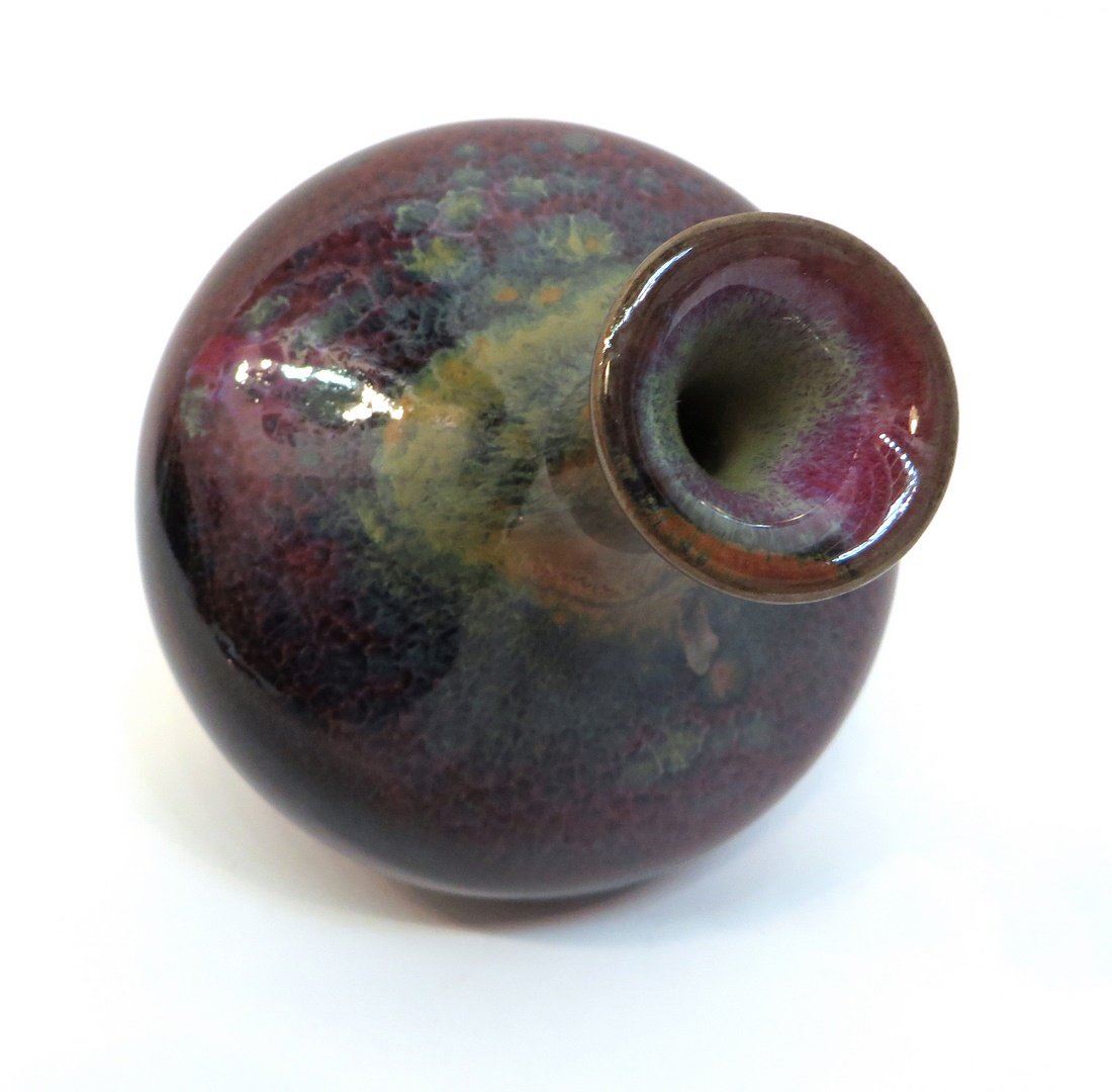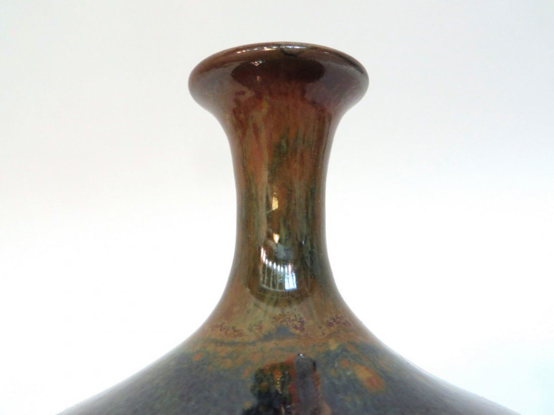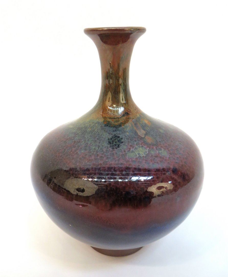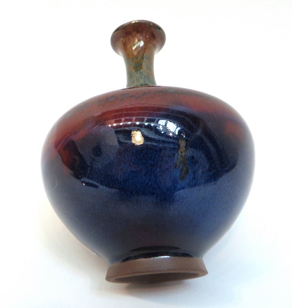 Jian ware vase made of a brown, clay body. The circular base graduates into a narrow neck. Marked on the bottom.