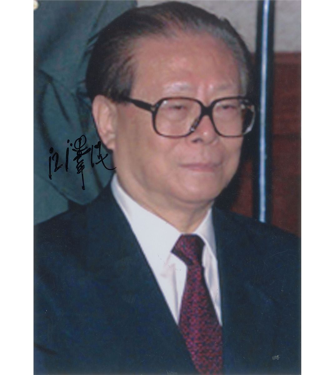 Fifth president of the People’s Republic of China (born 1926) who served from 1993 to 2003 and oversaw substantial economic development and reforms. Color glossy 5 x 7 photo, signed in black ink in Chinese. Photo is affixed to a slightly larger piece of cardstock. Minor surface creases, some signature contrast, and a slightly grainy image quality, otherwise fine condition. An extremely sought-after Chinese political autograph on the preferred format.