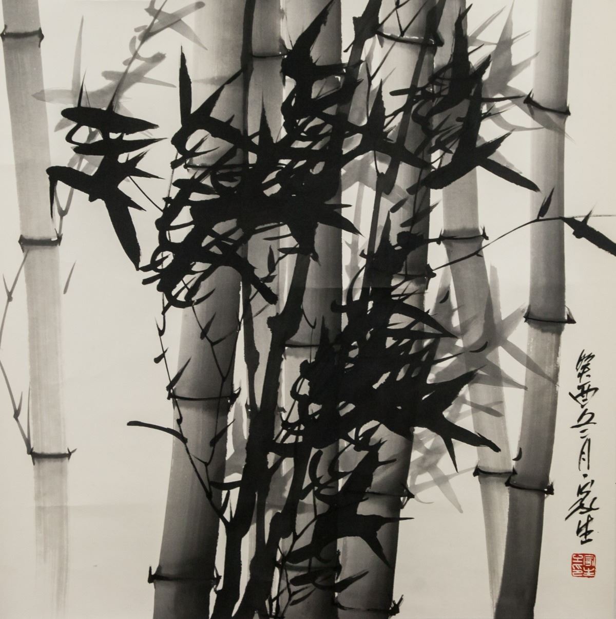 Ink on paper, hanging scroll. Featuring bamboo. Signed Jiasheng (20th century, Chinese), inscribed with 1 artist seal. 66 x 65 cm