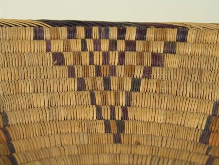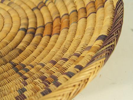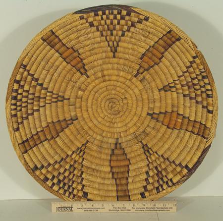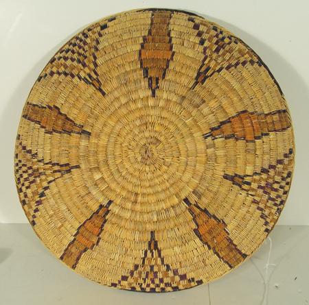 Huge coil weave basketry tray with finely outlined radiating design. Condition: very good. 4" x 19-1/2"