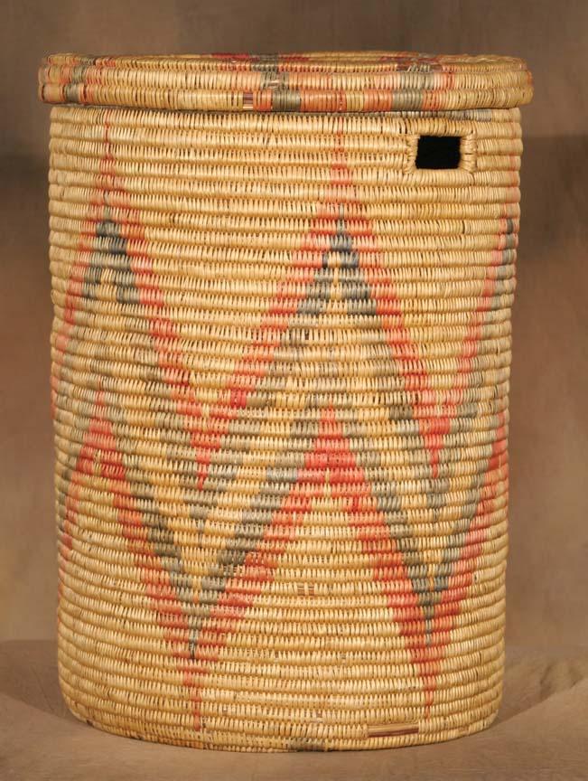 Jicarilla Apache Waste Basket. 21" tall x 15" diameter. Circa 1960s. (est $750-1,000). Provenance: Ex-Santa Fe, NM., Estate. For condition reports please visit: www.auctioninsantafe.com/cr2011.pdf