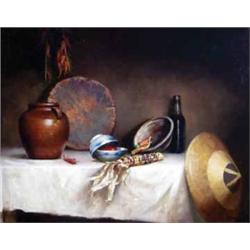 Jie Wei Zhou (b.1962) (Denver, Colorado). Oil on Canvas. "The Chinese Kitchen." 24" x 30". Framed. Estimate $6,000 - $7,000.