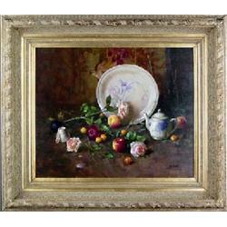 Jie Wei Zhou (b.1962) (Colorado) Oil on Canvas, "Still Life with Flowers," 20" x 24", signed lower right, Est $3,500 - $4,500