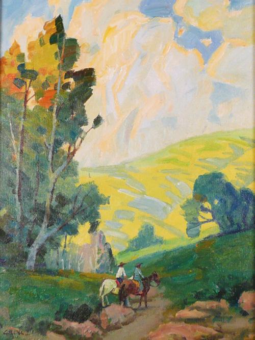 Jie Wei Zhou (b.1962) Oil on Canvas "Riders on the Range" Signed lower left "Chou" 13 1/2" x 10 1/2"