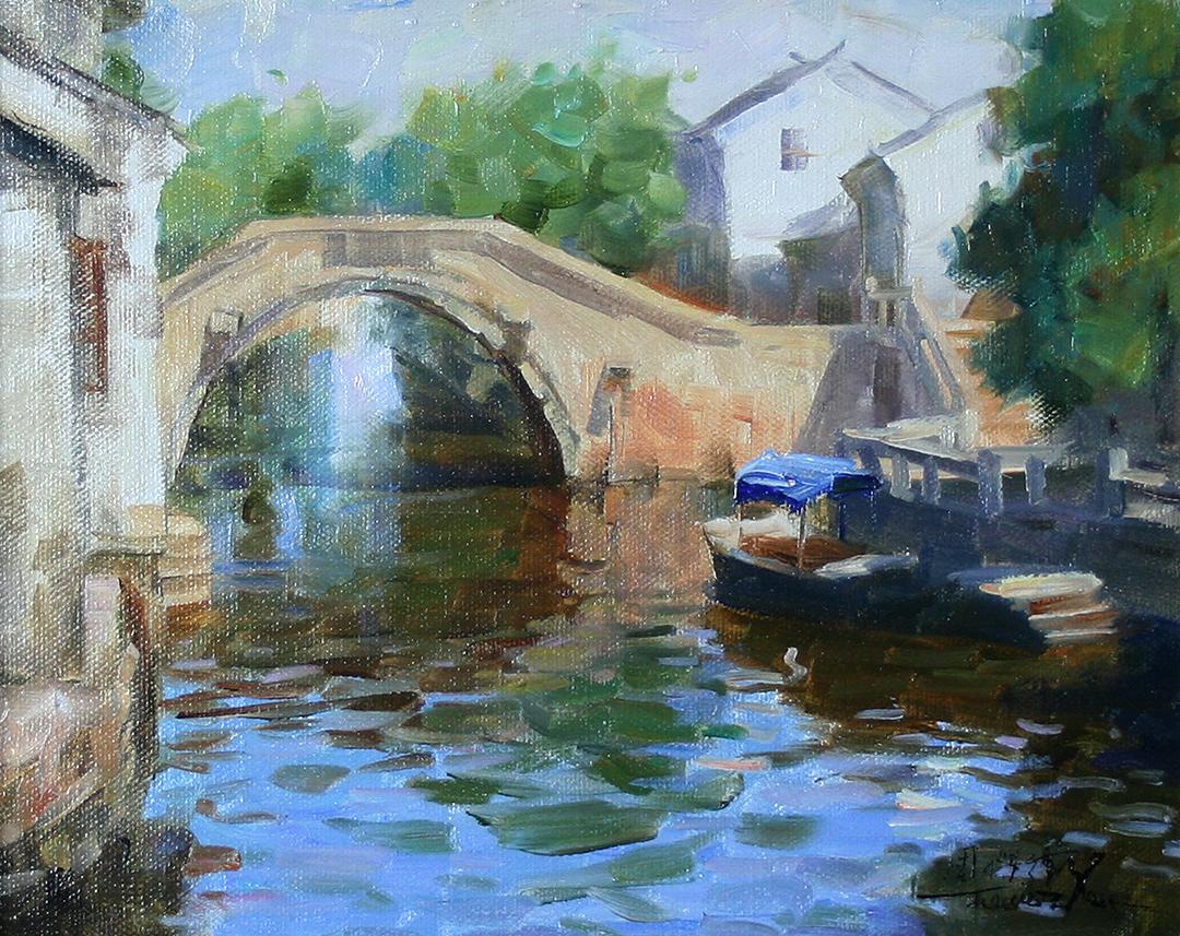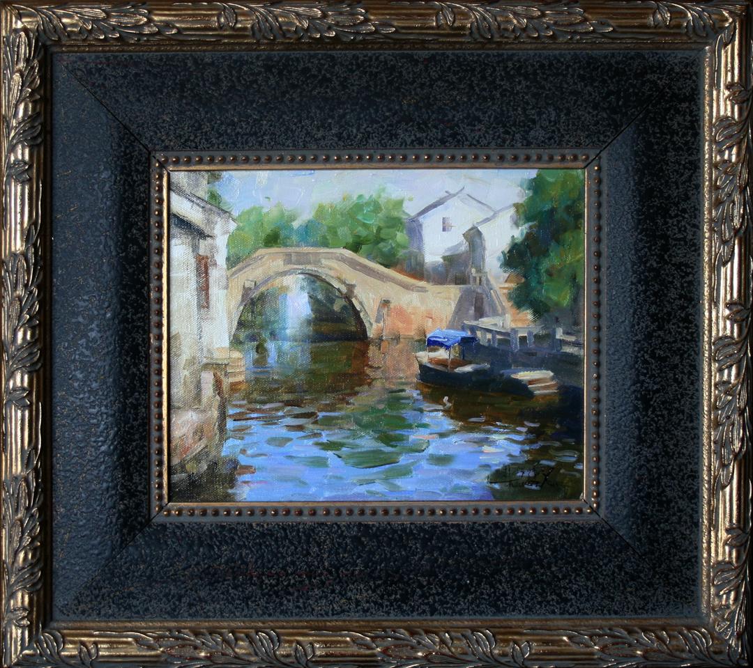 Jie Wei Zhou (b.1962) Oil On Canvas, "Suzhou Canal", 8" x 10", signed lower right.