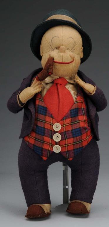 One of a pair of dolls that were made called Maggie and Jiggs. This is Jiggs only. Includes original hat and felt cigar in mouth. Nice, early comic character doll in original condition. Condition (Very Good). Size 20" T.