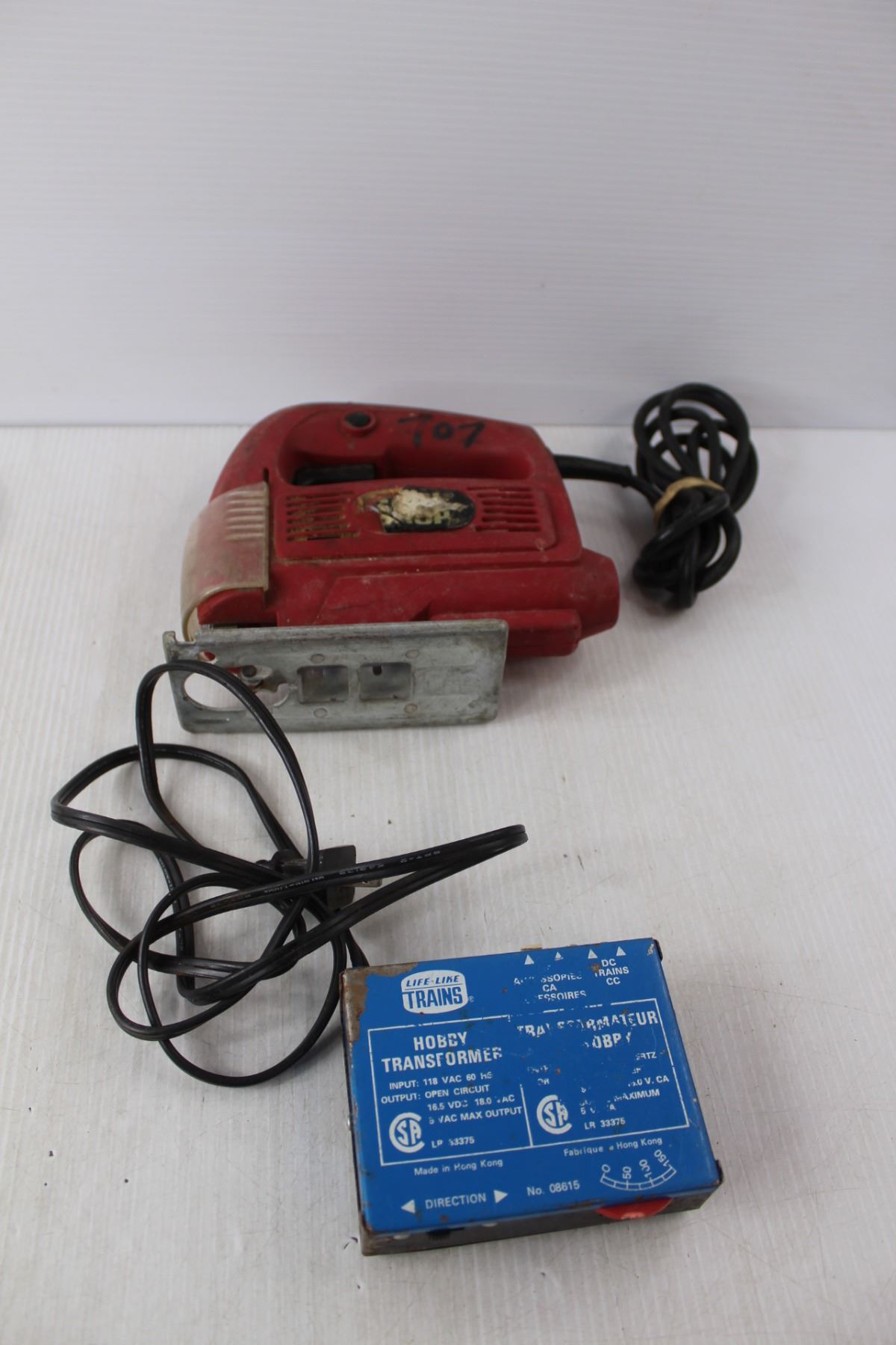 Jigsaw- Powers On, No Blade, Life-Like Trains Hobby Transformer, Power Bar, Extension Cord, Phone Charger