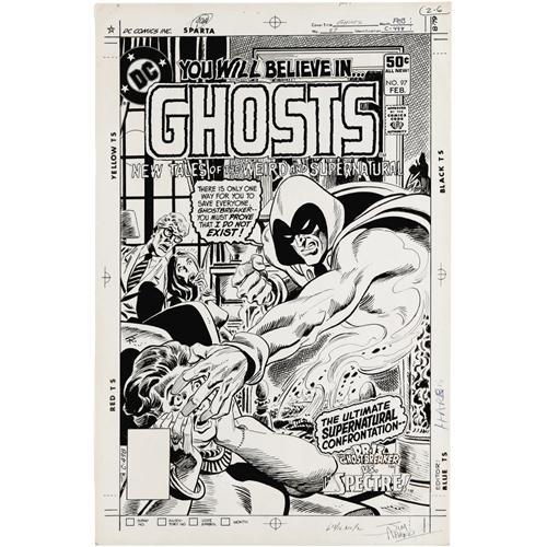 <B>Jim Aparo - Ghosts #97 Spectre Cover Original Art (DC, 1981).</B></I> Dr. 13, Ghost Breaker and the Spectre take center stage on this supernatural spectacular drawn by one of the Bronze Age's finest. Jim Aparo has been linked with the Spectre ever since drawing the character's incredible run in <B>Adventure Comics</B></I>. The image area of this cover measures 9.75"" x 15"", and the art is in Excellent condition.<BR><BR><b>Shipping:</b> Flat Material, Small (<a target=""_blank"" href=""http://www.heritageauctions.com/common/shipping.php"">view shipping information</a>)