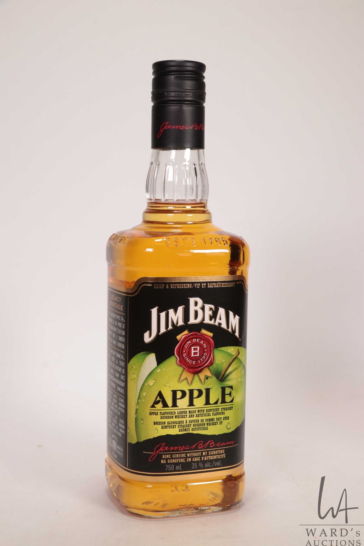 Jim Beam / Apple / Apple Flavoured Bourbon / 750ml / 35% ABV Note: Alcohol cannot be insured by any courier in Canada. Local pick up is recommended. Canadian bidders only