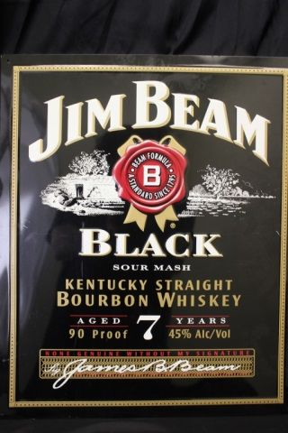 This lot is a Jim Beam Black Metal Sign. This piece is in wonderful condition and measures 18 x 22 inches. This would make a wonderful addition to any man cave.