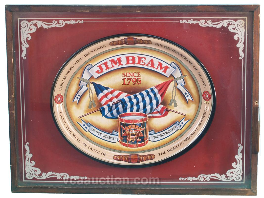 Jim Beam Oval Serving Tray In Shadow Box, Reproduction - Tray 17" x 13", Frame 25" x 19"