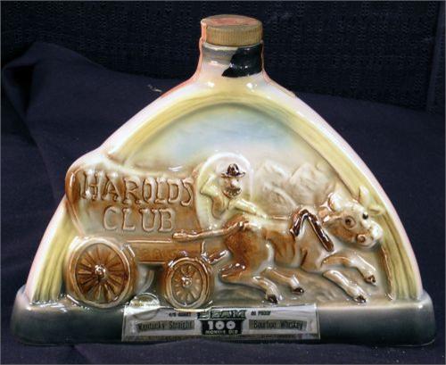 Jim Beam Whiskey Bottle Harolds Club Covered Wagon 7" x 12" x 5"