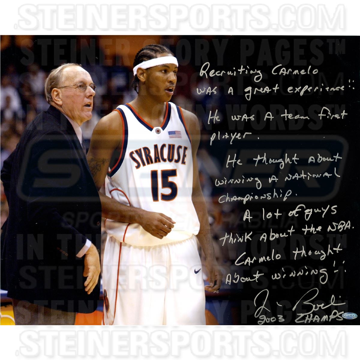 Jim Boeheim "Recruiting Carmelo" Signed 16x20 Story Photo