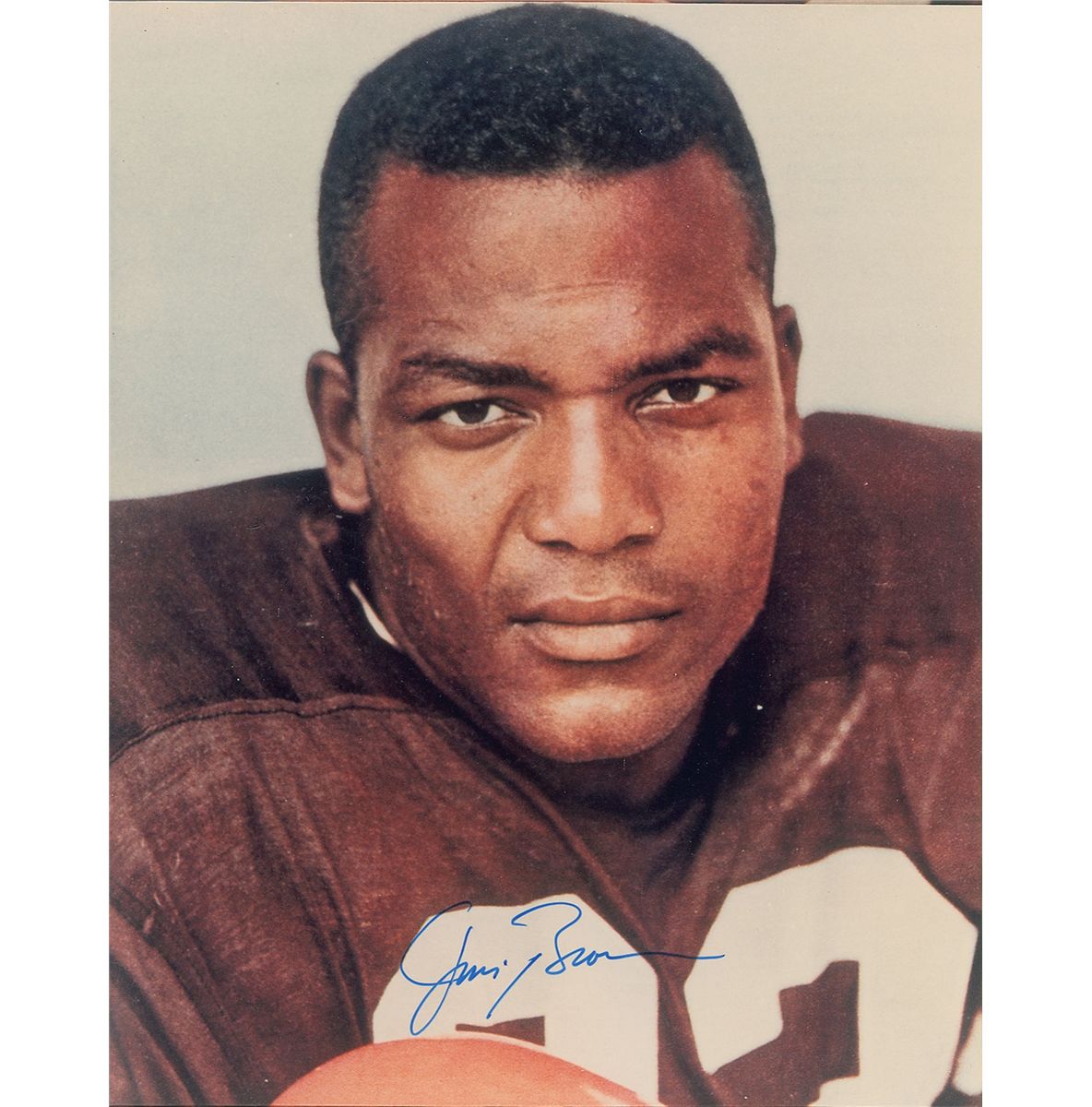 Color satin-finish 8 x 10 head-and-shoulders photo of Brown during his playing days, signed in blue felt tip. In fine condition.