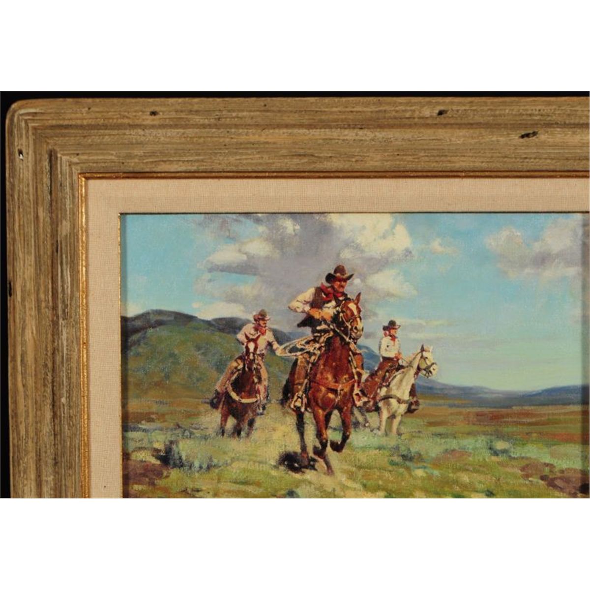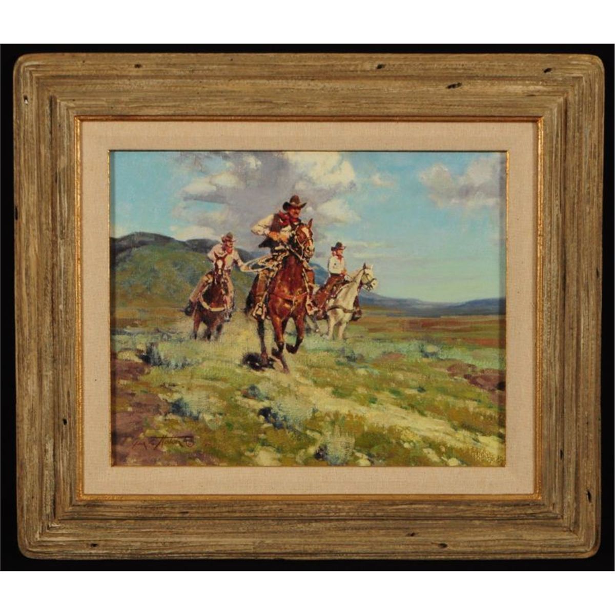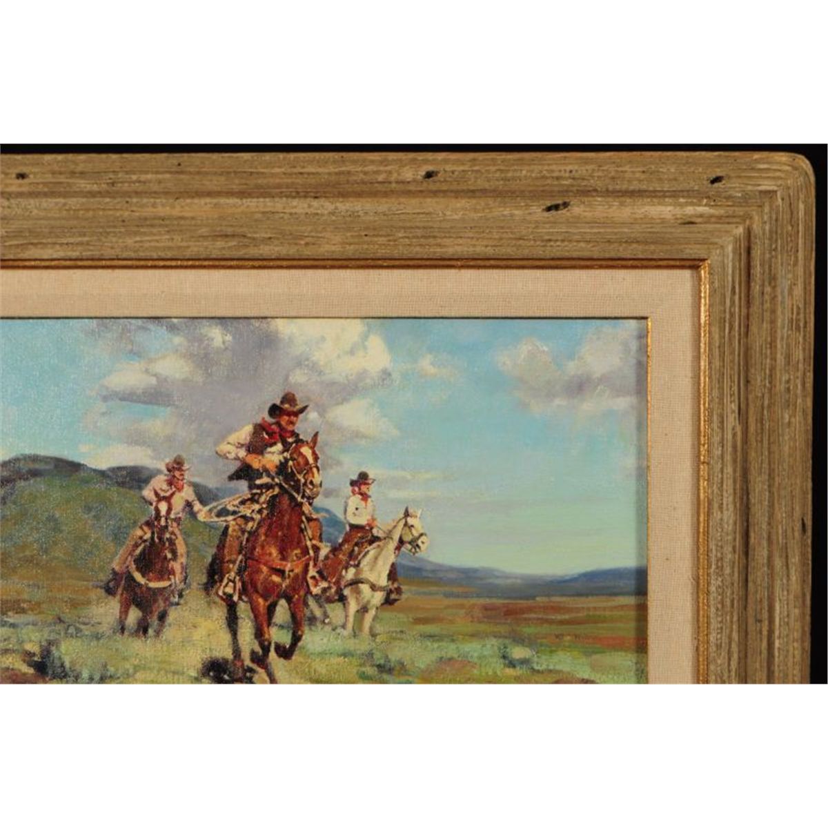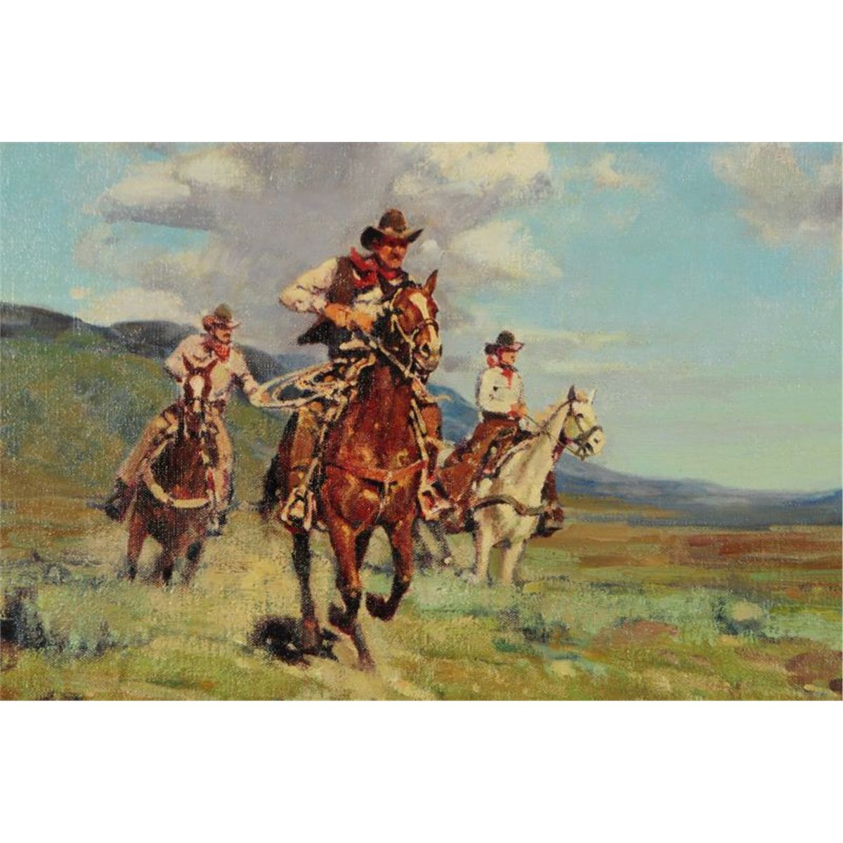 Jim C. Norton CA "Fast Horses" Oil on Canvas Painting, 1982, Signed Lower Left. Image Measures 16" x 20".
