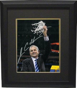 Jim Calhoun is the former head coach of the University of Connecticut's men's basketball team. He announced his retirement on September 13, 2012. His teams have won three national championships (1999, 2004, 2011), played in four Final Fours (most recently in 2011), won the 1988 NIT championship, and have won seven Big East tournament championships (in 1990, 1996, 1998, 1999, 2002, 2004, and 2011). In 2005 he was inducted into the Basketball Hall of Fame. On Feb 25, 2009, Jim Calhoun won his 800th game. On April 4, 2011, Calhoun won his third NCAA Men's Championship. The victory over Butler made Calhoun, at 68, the oldest coach to win an NCAA Division I men's basketball title. Jim Calhoun has hand signed this Connecticut Huskies 16X20 Photo. MAB Hologram and Certificate of Authenticity from Athlon Sports. Custom Black Mat and Premium Black Framed as shown.