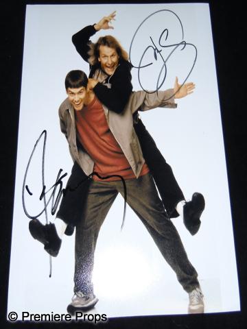 Jim Carrey and Jeff Daniels Autographed Photo – This 11x14 photograph has been boldly autographed by the two stars of “Dumb and Dumber” – Jim Carrey and Jeff Daniels. Very difficult signatures to obtain.