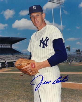Jim Coates was signed by the Yankees as an amateur free agent in 1951. In 1960 Coates went 13–3 as a spot starter in Casey Stengel’s much-maligned rotation. Coates was a member of the Yankee team that regained the American League pennant in 1960 but lost to the Pittsburgh Pirates in the World Series in seven games. In 1961 Coates went 11–5 as a spot starter for perhaps the major leagues' greatest-ever team. Coates relieved Ford in Game Four of the Series and pitched four scoreless innings for the save in a 7–0 Yankee win. In 1962 Coates went 7–6 for a Yankee team that repeated as World Champions. Coates was the losing pitcher in Game Four of this Series, which the Yankees won over the San Francisco Giants in seven games. Jim Coates has hand signed this New York Yankees 8x10 Photo. Certificate of Authenticity from Athlon Sports.