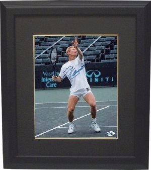 Jim Courier turned professional in 1988 and made his Grand Slam breakthrough at the 1991 French Open. In February of 1992, he became the tenth player to reach the World No. 1 ranking since the ranking system was implemented in 1973. In 1993, Courier again won the Australian Open. Courier captured a total of 23 singles titles and 6 doubles titles during his career. He spent a total of 58 weeks ranked as the World No. 1 in 1992 and 1993. He reached the finals of all four major championships during his career, a feat accomplished by only six other players in the Open Era. He was inducted into the International Tennis Hall of Fame in 2005. Jim Courier has hand autographed this 8x10 Photo. ASI Hologram and Certificate of Authenticity. Custom Black Mat and Black Framed as shown.