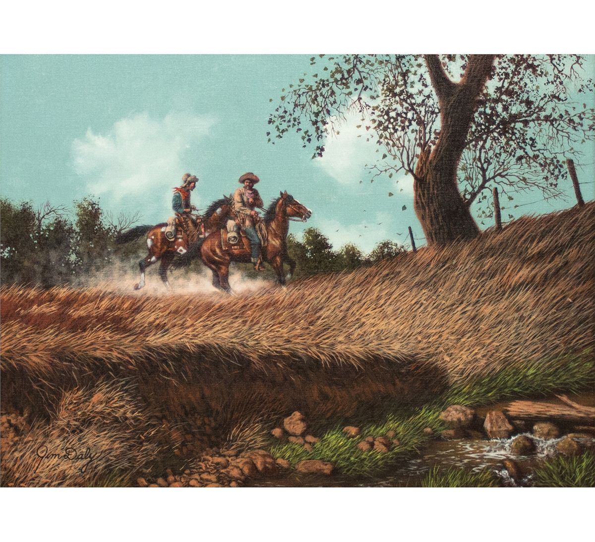 Jim Daly (1940 - ). The Search. 18" x 24" oil on canvas. Signed lower left: Jim Daly. Verso: titled on stretcher.