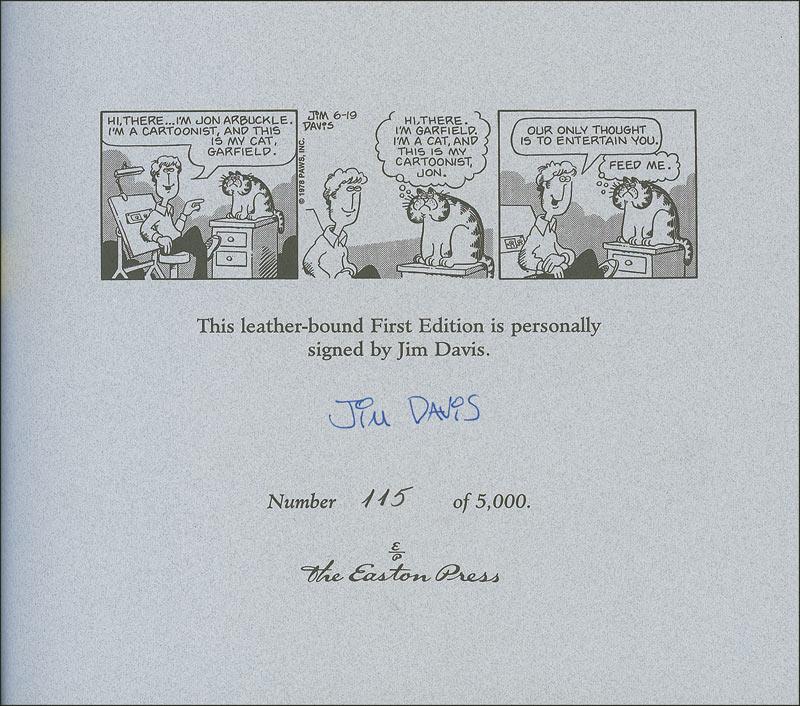 Two signed first edition books: 20 Years and Still Kicking: Garfield’s Twentieth Anniversary Collection (softcover), signed on the half-title page; and an Easton Press limited edition of 20 Years and Still Kicking: Garfield’s Twentieth Anniversary Collection, signed on the limitations page. In very fine condition.