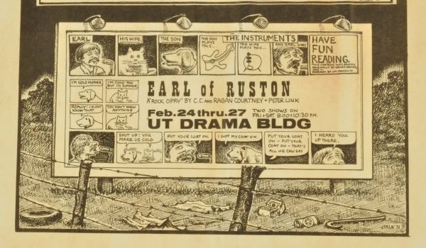 UT Drama Building, Austin ,TX. February 24-27, 1971. Artist: Jim Franklin, Linen backed. 8-1/2" x 11".