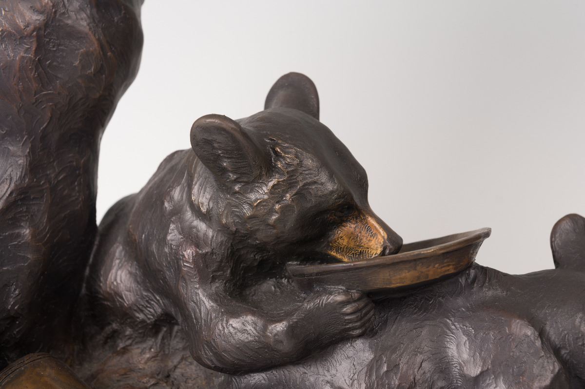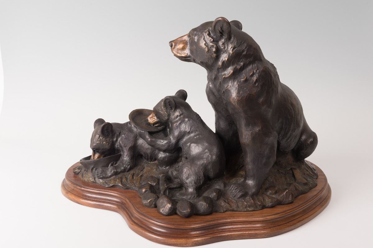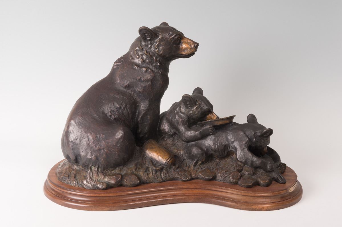 Jim Gilmore. Camp Chores. 12" x 12" x 18" bronze on swivel base. Inscribed: Jim Gilmore © 6/40.