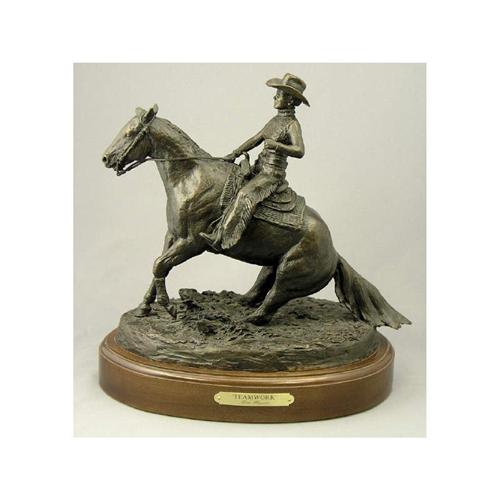 [Canadian b. 1948] TEAMWORK; 2002 Bronze sculpture on a wooden base; Ed. #9/10 11 in. high Signed, titled, dated & editioned.