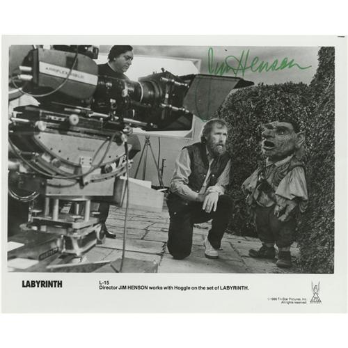 <B>Jim Henson Signed Photo.</B></I> A b&w 8" x 10" promo photo for <I>Labyrinth</B></I> signed by the director and Muppets creator in green ink, in Excellent condition.<BR><BR><b>Shipping:</b> Flat Material, Small (<a target="_blank" href="http://www.heritageauctions.com/common/shipping.php">view shipping information</a>) <BR><BR><B>Important no