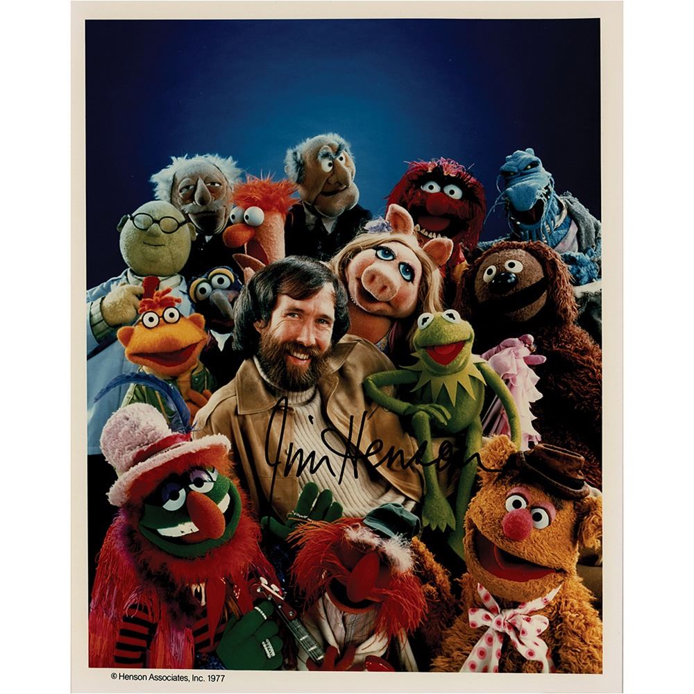 Circa 1977 color semi-glossy 8 x 10 Henson Associates publicity photo of Jim Henson surrounded by his Muppet friends, signed nicely in black felt tip. In very fine condition.