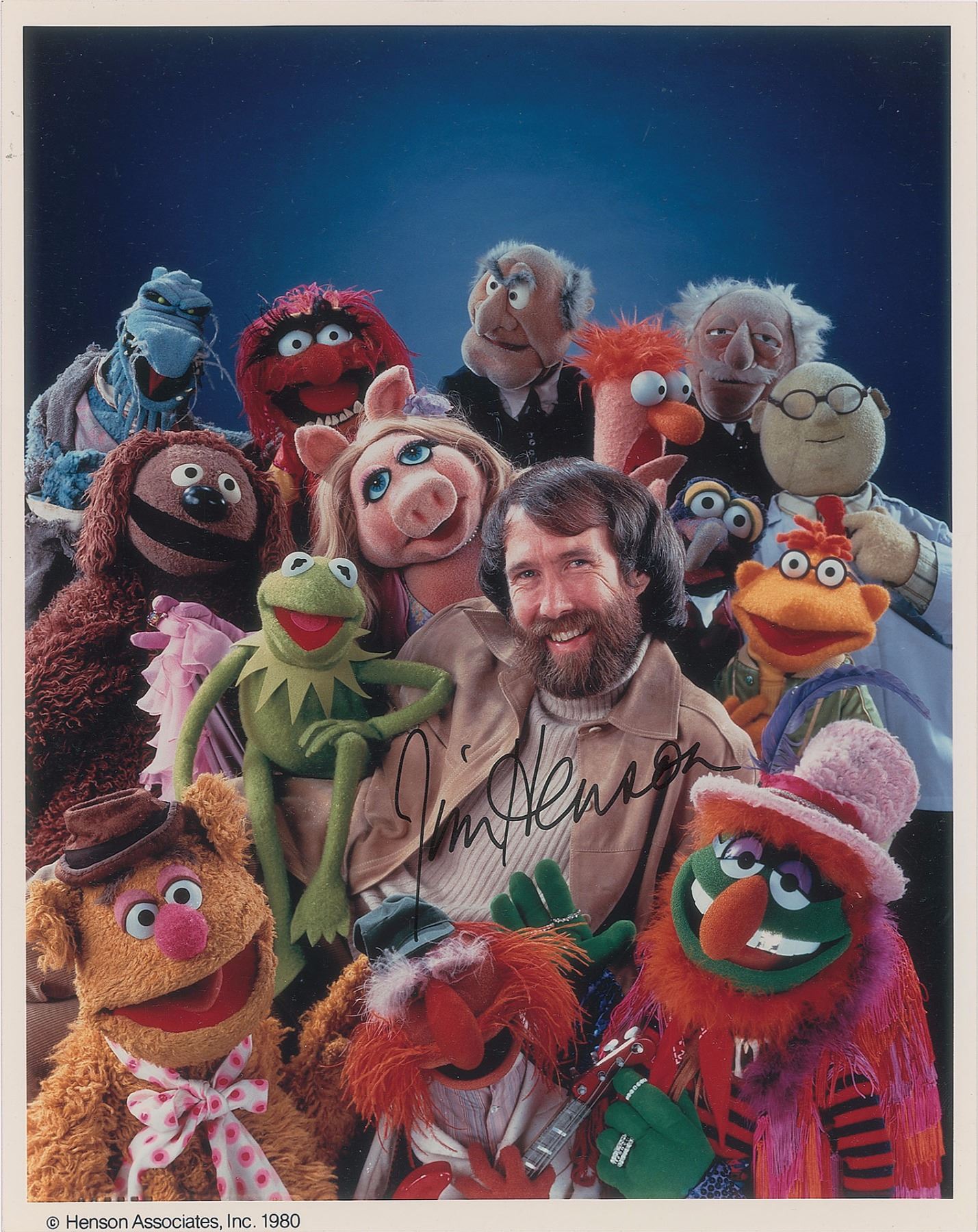 Circa 1980 color semi-glossy 8 x 10 photo of Henson surrounded by many of his most well-known Muppet creations, signed on his image in black felt tip. In fine condition. Accompanied by a letter of transmittal on Muppets letterhead, which references the "start up of a new full length creatures film entitled 'Labyrinth,' beginning right now in London."