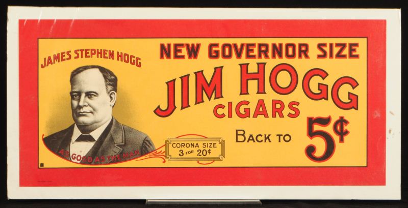 Jim Hogg Cigars Advertising, Measures 9" x 20"