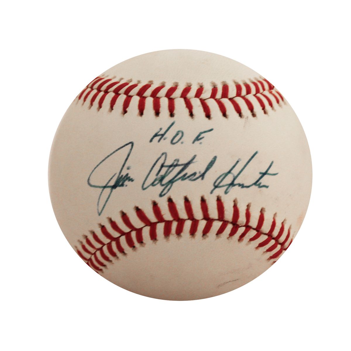 Jim ''Catfish'' Hunter Single-Signed American League Baseball -- In Blue Ink: ''H.O.F. Jim Catfish Hunter'' -- With JSA COA -- Near Fine