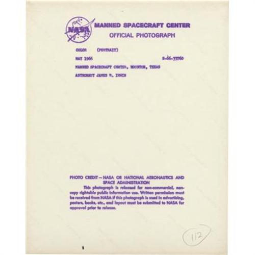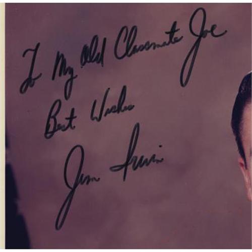 <B>Jim Irwin Signed Color Photograph,</B></I> 8" x 10", "<I>To My Old Classmate Joe/ Best Wishes/ Jim Irwin.</B></I>" Apollo 15 Lunar Module pilot Jim Irwin was Garino's high school classmate in Orlando, Florida, Jim Irwin walked on the moon in 1971; he died in 1991. <I>From the collection of renowned former physical trainer of the astronauts Joe Garino. This lot is accompanied by a signed certificate of authentication from Garino verifying its provenance.</B></I><BR><BR><b>Shipping:</b> Flat Material, Small (<a target="_blank" href="http://www.heritageauctions.com/common/shipping.php">view shipping information</a>)