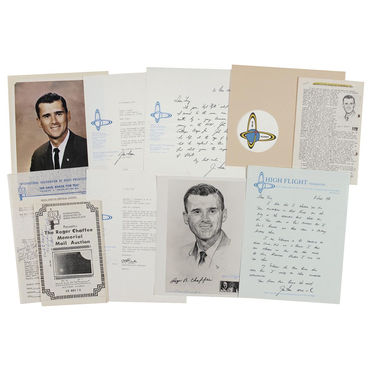 Also included: another ALS, signed “Jim Irwin,” from 1980; a photocopied letter from Don Chaffee, sending thanks after the auction, and reads, in part: “These past nine years I have kept a promise that I made to my son Astronaut Roger B. Chaffee that I would do what I could for the Space Program and though it has been very costly to me I have never regretted my actions … I want the world to know that I very much appreciate the efforts of the International Association of Space Philatelists in helping me to carry on this program of explaining to the general public the many benefits to mankind resulting from the Space program.”; The Roger Chaffee Memorial Mail Auction catalogue sponsored by the International Association of Space Philatelists, lot #1 was the High Flight poem here offered; a photocopy of an article announcing the sale; Anthony Cipriano’s auction invoice; IASP newsletter with article by Anthony Cipriano; an unsigned 8 x 10 photo of astronaut Chaffee; retained unsigned carbons of 1976 and 1980 letters by Cipriano to Irwin; illustrated booklet about High Flight Foundation; and an April 1976 issue of “Apogee,” High Flight publication. In fine condition.