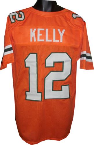 At Miami, Jim Kelly played an important role in helping build the University of Miami into one of the nation's premier collegiate football programs. He finished his career at Miami with 406 completions in 646 attempts for 5,233 yards and 32 TDs. This performance earned Kelly a place in the University of Miami Hall of Fame when he was inducted in 1992. This is a Jim Kelly Miami Hurricanes unsigned Orange TB unlicensed custom-prostyle jersey with twill stitched nameplate and numbers. perfect for autograph or to wear! Size XL