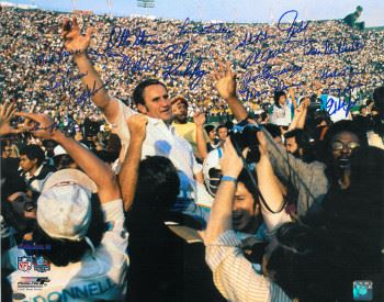 The 1972 Dolphins are the only National Football League team to win the Super Bowl with a perfect season. The 1972 Dolphins went 14–0 in the regular season and won all three post-season games, including Super Bowl VII against the Washington Redskins, to finish 17–0. The team remains the only NFL team to complete an entire season undefeated and untied from the opening game through the Super Bowl. This Don Shula Carry Off Horizontal 16x20 Photo is hand signed by 18 members of the 1972 Miami Dolphins SB VII Champs including: Garo Yepremian, Bob Kuechenberg, Marv Fleming, Jim Kiick, Marlin Briscoe, Doug Crusan, Curtis Johnson, Larry Ball, Otto Stone, Lloyd Mumphord, Howard Twilley, Mike Kolen, Al Jenkins, Jim Dunaway, Vern Den Herder, Hubert Ginn, Larry Seiple and Ed Jenkins. Leaf Authentics Hologram and Certificate of Authenticity from Athlon Sports.