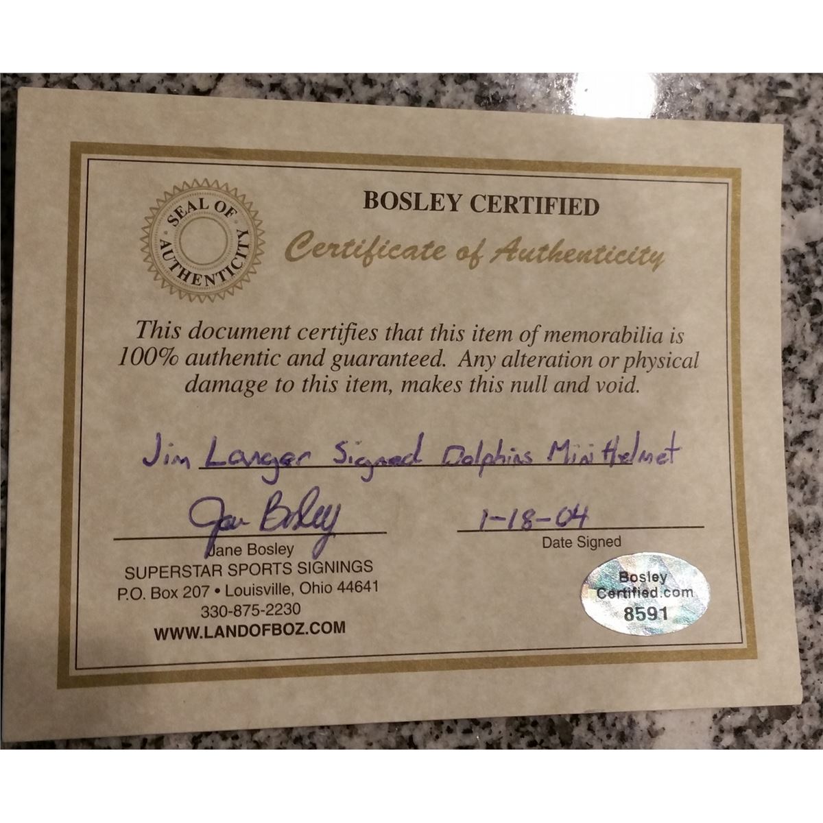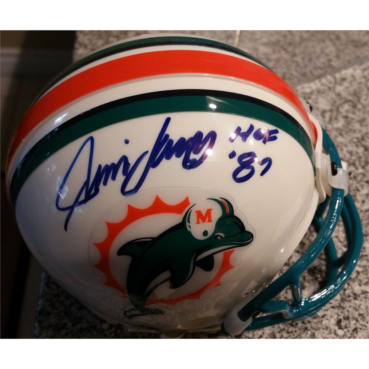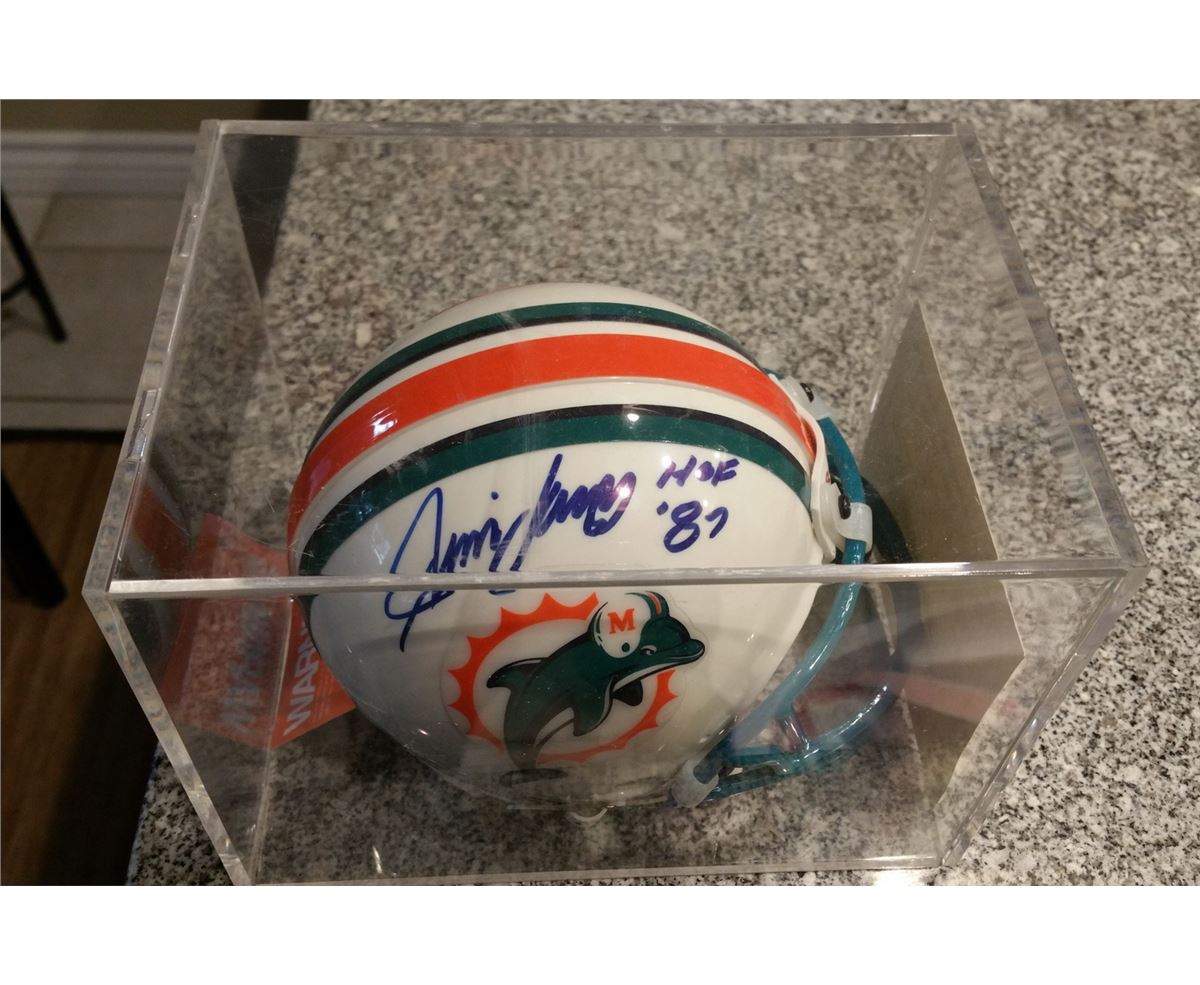 Jim Langer Signed Dolphins Mini Helmet, Blue sharpie signature and will come with a cube and COA