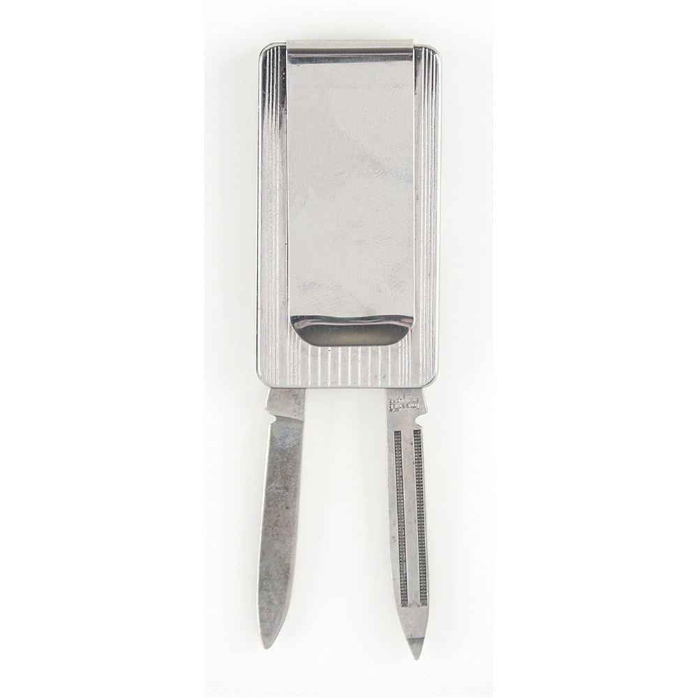 NASA astronaut Jim McDivitt‰Ûªs silvertone money clip, 1.25è x 2è, with an Apollo 9 mission insignia to the front, and the left and right sides housing a nail file and a pocket knife. In fine condition. Accompanied by a letter of provenance stating that the money clip was purchased at the McDivitt family estate sale held in Tucson, Arizona, on April 1, 2022.