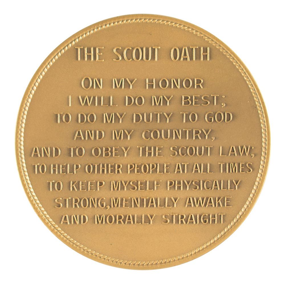 NASA astronaut Jim McDivitt‰Ûªs bronze-tone Service Medal from the Boy Scouts of America, 2.75è in diameter, with the front featuring the BSA logo in relief below raised text, ‰ÛÏIn Recognition of Your Service to the Boy Scouts of America,‰Û and the scroll to lower portion engraved ‰ÛÏJames A. McDivitt.‰Û The reverse bears ‰ÛÏThe Scout Oath‰Û in raised lettering. Condition is mint state. Includes a green Arthus-Bertrand presentation case. Accompanied by a letter of provenance stating that the medal was purchased at the McDivitt family estate sale held in Tucson, Arizona, on April 1, 2022.