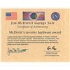 Lunar Module inverter presented to astronaut Jim McDivitt. Inverter measures 8.25 x 3.75 and has been converted into a presentation piece with the detached base having an engraved plaque which reads, “To Jim McDivitt in recognition of his first ‘power’ triumph.” In fine condition. McDivitt flew the Lunar Module during the Apollo 9 mission, marking the first manned flight of an LM and proving the spacecraft worthy of flight. Accompanied by a certificate of authenticity from Novaspace as part of Jim McDivitt’s garage sale.
