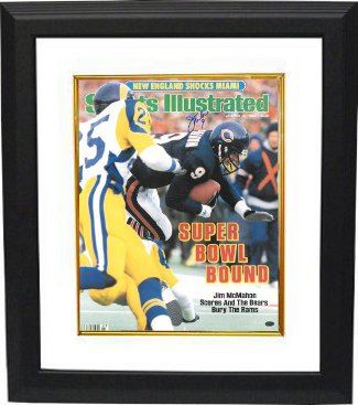 Jim McMahon was selected by the Chicago Bears in the first round of the 1982 NFL Draft. McMahon quickly displayed a natural ability to read defenses and an athletic versatility that surprised many. He ended the 1985 season with a strong performance in Super Bowl XX, which the Bears won 46–10 over the New England Patriots. In that game, McMahon became the first quarterback in the history of the Super Bowl to rush for two touchdowns. Jim McMahon has hand autographed this Chicago Bears Sports Illustrated 16x20 Photo from January 20, 1986. Leaf Hologram and Certificate of Authenticity from Athlon Sports. Custom White Mat and Premium Black Color Framed as shown.