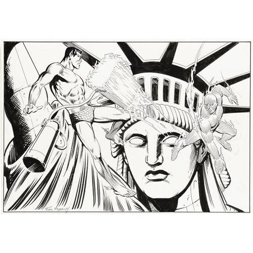 <B>Jim Mooney - Sub-Mariner and the Human Torch Specialty Illustration Original Art (undated).</B></I> With a career stretching back to the 1940s, "Gentleman" Jim Mooney has worked with virtually every major comic book icon. In the last few years, Mooney has kept himself busy doing commissions and lending his talents to smaller companies. This illustration has an image area of 16" x 11" and is in Excellent condition. Signed by Jim Mooney at the bottom left. <BR><BR><B>Important notice:</B> Heritage usually auctions material at the rate of 200-250 lots per hour. On some occasions eBay Live bid software or the Internet may not be able to keep up with the pace of the auction. We recommend placing a realistic absentee bid now as insurance to avoid disappointment. Occasionally the auctioneer may eliminate or reject an eBay Live bid, and the auctioneer may also reopen a lot after the close of the eBay live bidding (usually because we missed an audience bid), and may reject your bid even if it shows you as the winning bidder. By bidding via eBay Live, you agree that Heritage may award the lot to another bidder at its sole discretion under the circumstances described above or any other reasonable circumstances. Since eBay bids are not shown to us until we open the lot on the floor, we treat those bids just like floor bids. In most cases the floor responds before the eBay bid is presented to us, due to Internet lag time, so for consistency we have made it a policy that floor bids are always considered first over tie eBay live bids. Also please note that all Heritage lots purchased through eBay Live carry a 22.5% Buyer's Premium. Please make sure you read the Terms and Conditions before you bid. This lot is being auctioned in conjunction with a live floor auction by Heritage Auction Galleries. All final auction and invoice information will be supplied by Heritage Auction Galleries, and all other information should be considered preliminary. Lot:41001 <BR><BR><B>Winning Notification and Billing:</B> After the FINAL session in this auction is complete, Heritage will send e-mail and snail mail invoices. This process normally takes several days. All final auction and invoice information will be supplied by Heritage Auction Galleries, and all other information should be considered preliminary. <BR><BR>This auction will be conducted on a live auction floor and over the Internet through eBay Live. If you choose to place an absentee bid, please take a moment to <font color='#0000ff'><u><a href='http://pages.ebay.com/liveauctions/help/before/laabsentee.html'>learn how eBay Live absentee bidding works</a></u></font><font color='#000000'>