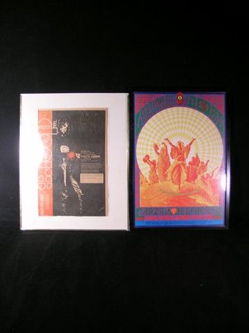 A lot of (2) vintage posters from the iconic 1960's rock band The Doors. First is a framed poster with 60's psychedelic graphics announcing a concert for The Doors and Captain Beefheart (measures approx. 15"x 21"), and the second is a plexiglass framed newspaper advertisement for the Doors concert at the Fabulous Forum in Inglewood, CA. (measures approx. 18 1/2"x 20 1/2"). Oversized item. Additional postage required.