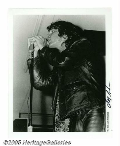 <B>Jim Morrison Unpublished Photo (Don Aters).</B></I> Photographer Don Aters made only 500 of these limited, black and white 8" x 10" photos. This phot, signed by Aters, shows Jim Morrison of the Doors performing at the Matrix in San Francisco in 1967. This was the Doors' first trip to SF, and the photo shows a young Morrison on stage. A cool piece for the Doors collector.