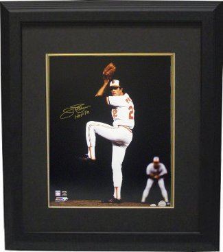 Jim Palmer has been considered one of the best pitchers in Orioles – and major-league – history. He was a mainstay in the rotation during Baltimore's six pennant-winning teams in the 1960s. Also, he is the only pitcher in big-league history to win World Series games in three decades (1966, 1970–71, 1983). Palmer won spots on 6 all-star teams, 4 gold gloves, 3 Cy Young Awards, and 2 ERA titles. He led the American League in victories three times. Palmer retired in 1984 as a member of the defending World Champions. He is a member of major league baseball's Hall of Fame. Jim Palmer has hand autographed this Baltimore Orioles 16x20 Photo with HOF 90 inscription. Leaf Authentics Hologram and Certificate of Authenticity from Athlon Sports. Custom Black Mat and Premium Black Frame as shown.