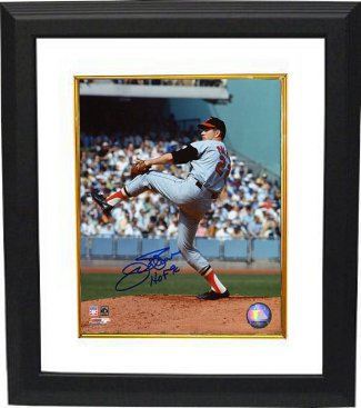 Jim Palmer has been considered one of the best pitchers in Orioles – and major-league – history. He was a mainstay in the rotation during Baltimore's six pennant-winning teams in the 1960s. Also, he is the only pitcher in big-league history to win World Series games in three decades (1966, 1970–71, 1983). Palmer won spots on 6 all-star teams, 4 gold gloves, 3 Cy Young Awards, and 2 ERA titles. He led the American League in victories three times. Palmer retired in 1984 as a member of the defending World Champions. He is a member of major league baseball's Hall of Fame. Jim Palmer has hand autographed this Baltimore Orioles 8x10 Photo with HOF 90 inscription. MAB Hologram and Certificate of Authenticity from Athlon Sports. Custom White Mat and Premium Black Color Framed as shown.