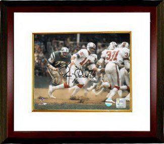 In 1971, Jim Plunkett was drafted with the first overall pick in the NFL draft by the New England Patriots (the team was still known as the Boston Patriots at the time of the draft; the name change to New England did not become official until March 21 of that year). Plunkett owns the distinction of being the only player of Hispanic heritage to be drafted with the first overall pick in the NFL draft. The Patriots finished the season at 6-8, fourth place in the AFC East. Jim Plunkett has hand signed this New England Patriots 8x10 Photo. LOJO Sports hologram and certificate of Authenticity from Athlon Sports. Custom White Mat and Premium Mahogany Color Framed as shown.