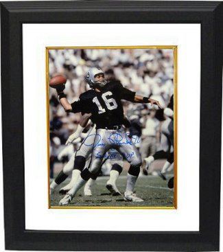 Jim Plunkett played college football for Stanford University, where he won the Heisman Trophy, and professionally for three National Football League teams: the New England Patriots, San Francisco 49ers and Oakland/Los Angeles Raiders. He led the Raiders to two Super Bowl victories (XV and XVIII). He is the only retired quarterback to start, and win, two Super Bowls who is not also in the Pro Football Hall of Fame in Canton, Ohio. Jim Plunkett has hand autographed this Raiders 16x20 Color Photo with SB XV MVP inscription. Certificate of Authenticity from Athlon Sports. Custom White Mat and Premium Black Frame as shown