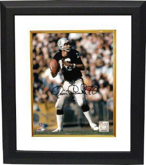 Jim Plunkett played college football for Stanford University, where he won the Heisman Trophy, and professionally for three National Football League teams: the New England Patriots, San Francisco 49ers and Oakland/Los Angeles Raiders. He led the Raiders to two Super Bowl victories (XV and XVIII). He is the only retired quarterback to start, and win, two Super Bowls who is not also in the Pro Football Hall of Fame in Canton, Ohio. Jim Plunkett has hand autographed this Raiders 8x10 Color Photo. Custom White Mat and Premium Black Color Frame as shown. LOJO Hologram and Certificate of Authenticity from Athlon Sports.